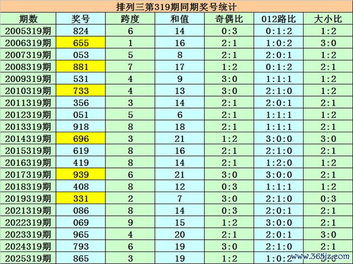 上期回来:摆设三第2025319期奖号为865,组选类型为组六,奖号大小比为3:0,012路比为1:0:2,奇偶比为1:2。